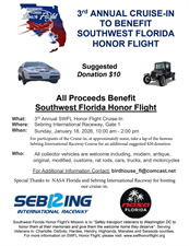 Cruise into Sebring International Raceway on Jan. 18, 2026 for the 3rd Annual SWFL Honor Flight Cruise-In! Enjoy incredible cars, community spirit, and patriotic fun—all to help us honor and fly our nation’s greatest treasures, our veterans.