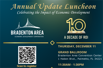 Join us in the newly renovated Bradenton Area Convention Center Grand Ballroom as we bring together the region’s most influential business and community leaders to highlight the return on investment that economic development delivers for our community.