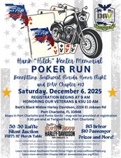 Join the SWFL Honor Flight Poker Run on Dec. 6th for a scenic, spirited ride benefiting our veterans. Start at Bert’s Black Widow Harley-Davidson, visit veteran service stops, and finish strong at Twisted Fork—all for those who served.